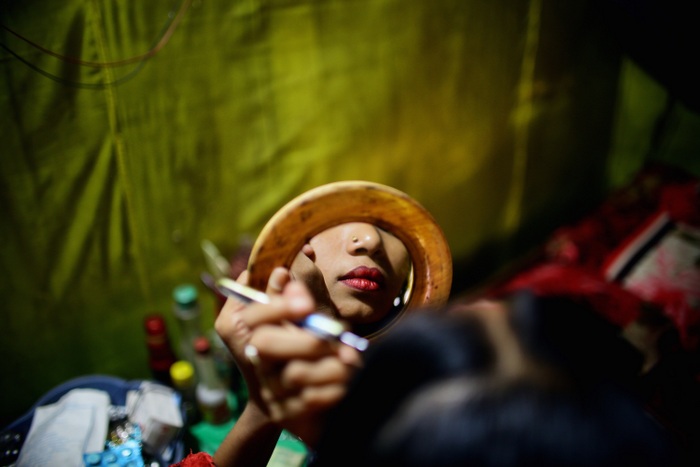 « Sonagachi à Calcutta, abrite le deuxième plus grand « quartier chaud » d’Asie. C’est un véritable labyrinthe coloré de ruelles étroites, encerclé par d’imposantes tours, des maisons de passes délabrées, ainsi que des étals de marchés lumineux. Le quartier tentaculaire mêle réseaux mafieux de gangs organisés, trafiquants et victimes : un endroit où les reporters et les étrangers ne sont pas les bienvenus, où les politiques et la police sont corrompus ou complices, et où près de 13 000 prostituées, souvent mineures, sont violées tous les jours pour 2£. »