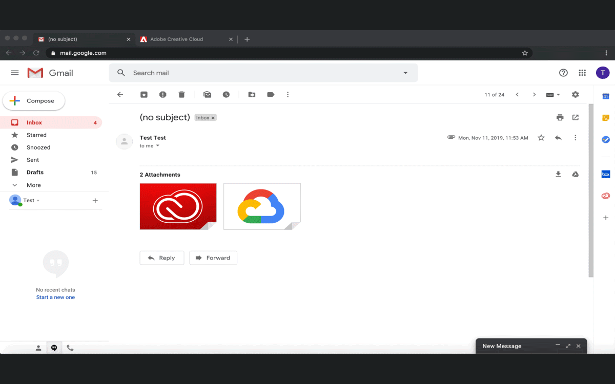 Ce module complémentaire, que vous pouvez trouver et installer ici, a deux utilisations principales : joindre des fichiers Creative Cloud à un email sans quitter Gmail, et enregistrer les pièces jointes que vous avez reçues directement dans votre Creative Cloud. Pour l’instant en revanche, ce module complémentaire ne prend en charge que les liens que vous avez préalablement définis comme publics.