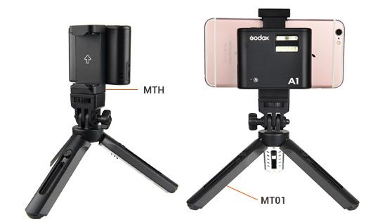 Le Godox A1 peut être trouvé à un peu moins de 70 € sur de nombreux sites, et propose aussi quelques accessoires supplémentaires, comme ce trepied et une fixation pour le A1.