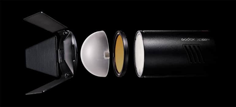Désormais incontournable sur le marché des flashs, la solution de fixation magnétiqueest aussi présente sur le Godox AD100Pro. Le kit d’accessoires AK-R1 proposé par la marque et incluant différents modificateurs est donc compatible avec ce tout nouveau modèle.