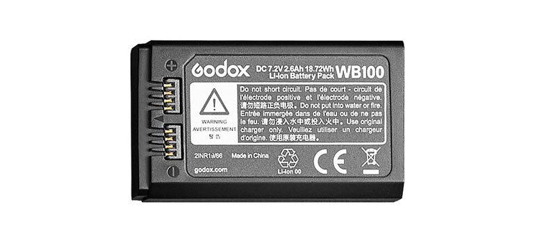 Pour un appareil aussi compact et destiné à la mobilité, il fallait évidemment une solution basée sur une batterie. La puissante batterie Lithium-ion de 2600 mAh permet selon Godox de réaliser 360 flashs à pleine puissance avec une seule charge.