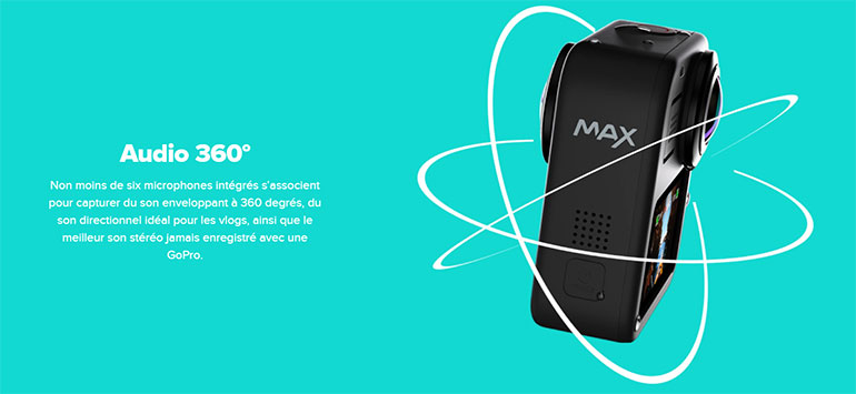 La GoPro MAX est ses 6 micros permettent une prise de son de qualité spatialisée. Avec cette mise à jour V1.40, les compétences de la GoPro Max dans ce domaine continuent de s’améliorer.