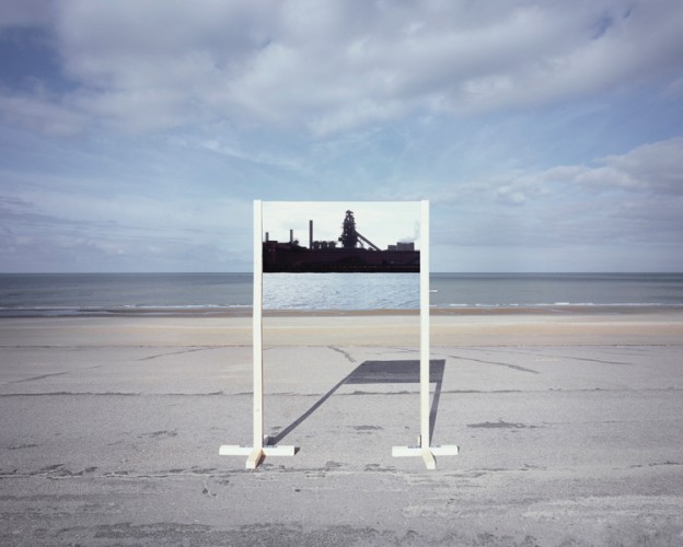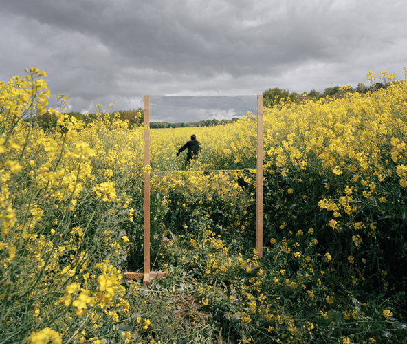 Avec Open fields, Guillaume Amat a sorti la photo de son cadre pour lui offrir une perspective plus large. « Pour Le projet Open Fields j’ai souhaité travailler sur la notion de territoire en tant qu’espace et sur l’acte photographique lui même. Réalisée à la chambre 4x5inch et au moyen format 6x7cm la série “Open Field” questionne la représentation du paysage et la notion même de sa captation à l’aide d’un miroir mesurant 80x120cm disposé in situ. Le miroir vient recomposer le paysage avec le hors-champ qui lui fait face, créant ainsi une double lecture. Utilisé en peinture le miroir est ici une manière d’explorer les limites du cadre photographique par la mise en abîme de l’image et le surcadrage imposé par le miroir. »