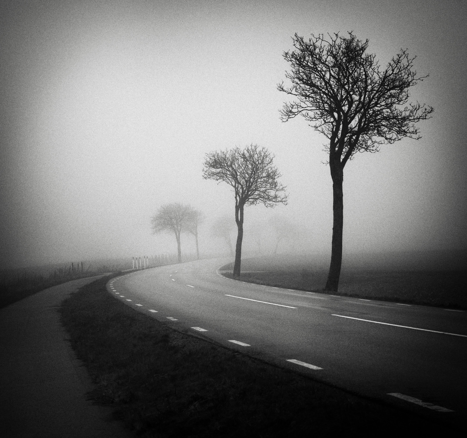 Conçus comme des tableaux, ces clichés sont un hommage aux grands maîtres de la peinture et de la photographie et dévoilent une inspiration à des noms tels que Kirsten Klein et Michael Kenna. En utilisant une exposition lumineuse basse, il crée des compositions sombres, traduisant des ambiances entre le crépuscule et le coucher de Soleil. Le mauvais temps et les cieux nuageux viennent alimenter ces atmosphères irréelles, rigoureusement en noir et blanc, accentuant le côté mystique et fantomatique. Ce n’est pas un hasard si la série ici présentée s’appelle Silent moments : c’est en effet un hommage au calme, à la nature vierge et aux grands espaces que le photographe nous propose.
