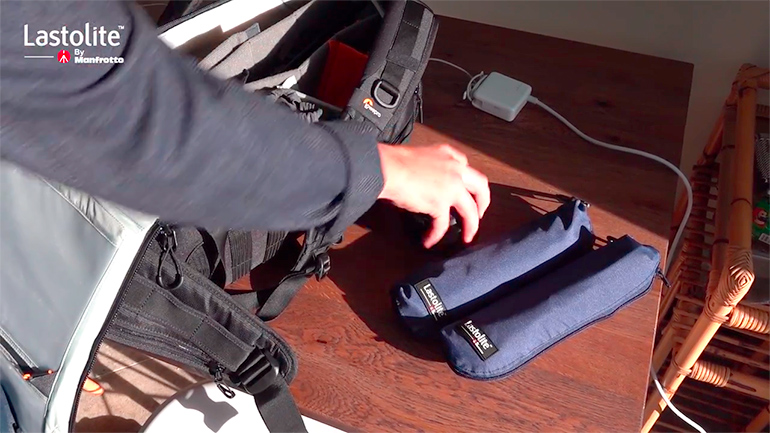 Alors qu’un diffuseur de ce type ne prend qu’un tiers de sa taille initiale, le HaloCompact rentre dans une housse de transport qui rentre aisément dans votre sac photo. Un mousqueton permet de le mettre à la ceinture ou de le fixer à l’extérieur du sac. On peut comparer l’encombrement de ce système à celui d’une grande trousse d’écolier.
