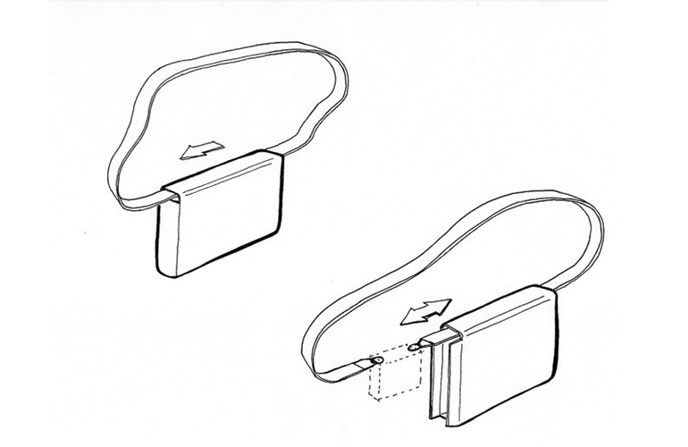 Au lieu d’avoir à sortir l’appareil photo du sac, en réalité, on sépare le sac de l’appareil photo. Pour cela, on tire sur la sangle située sur le côté du sac. Pour ranger l’appareil, il suffit de faire le glissement inverse, puis de refermer les sortes de petits volets à l’avant. Simple et efficace, en effet.