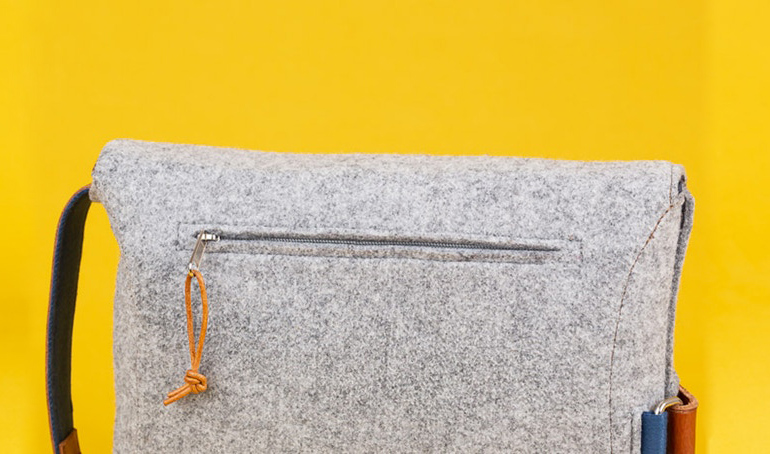 La grande majorité du sac est constitué de feutre en « PET », un plastique connu pour sa capacité à être recyclé. Il est aussi intéressant en termes de résistance, de légèreté, et d’étanchéité, tout en apportant un look unique au sac.
