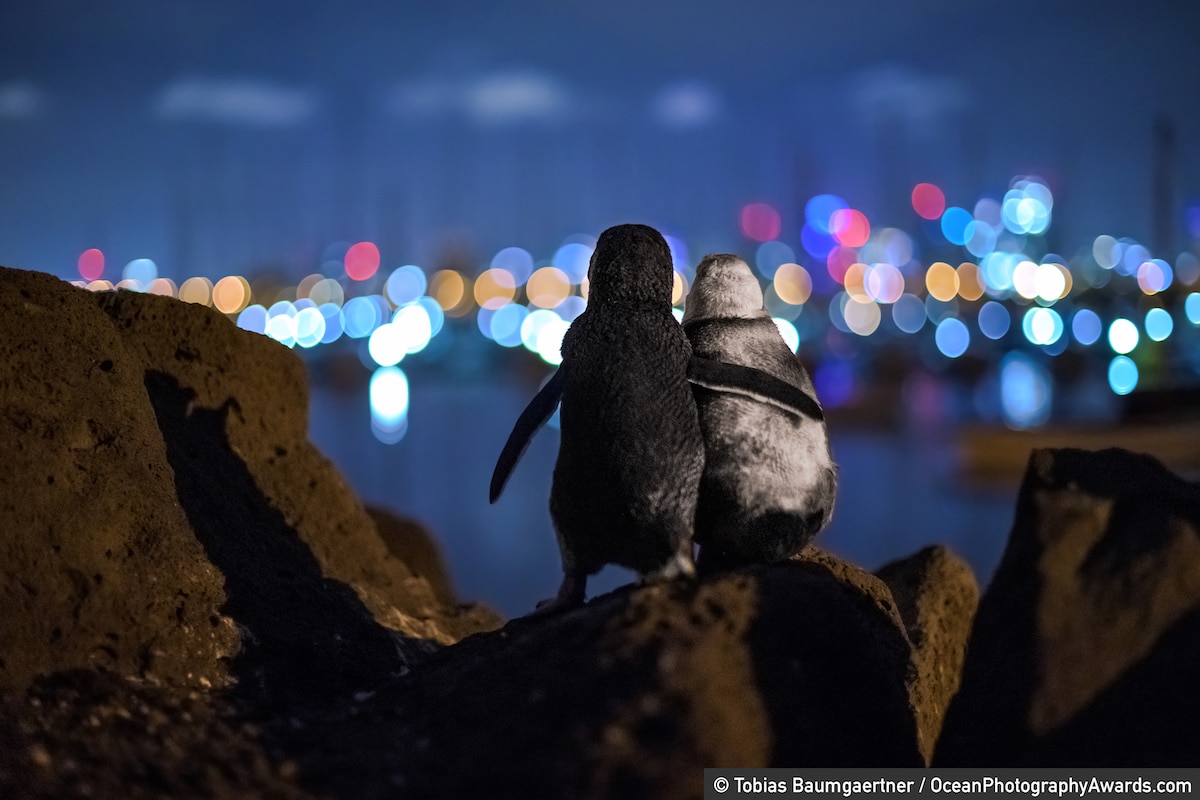 Parmi les finalistes figurent des noms familiers comme Florian Ledoux, dont le travail dans l’Arctique est fréquemment récompensé. Ici, il n’est pas seulement nominé pour le prix du photographe de l’année dans le domaine de la conservation des océans, mais il est également en lice pour le prix du portfolio collectif. Tobias Baumgaertner est en lice pour le prix du Community Choice. Sa photo de deux pingouins en Australie, qui semblent s’embrasser en regardant les lumières de la ville, est devenue virale au début de l’année, et son succès au concours n’est donc pas une surprise. Mention spéciale aussi pour le cliché de Matt Sharp, qui montre comment les déchets humains sont en train de modifier la biodiversité en se fondant parfois avec elle…de quoi nous laisser songeurs.