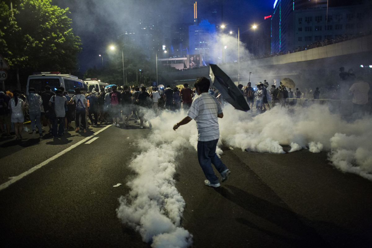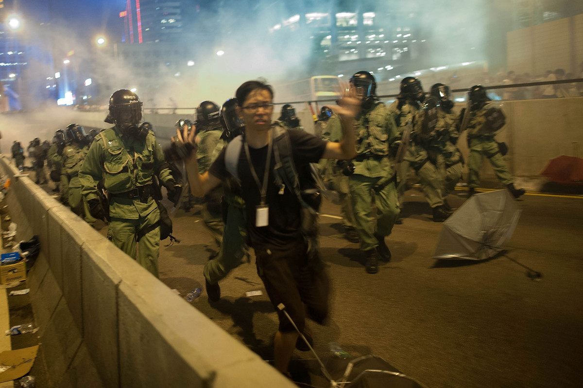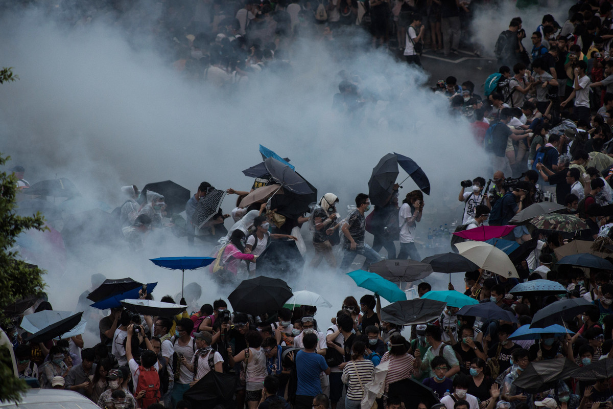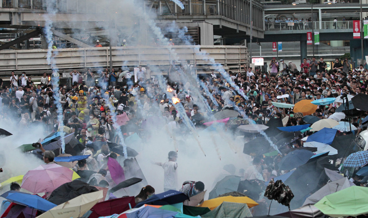 Soudainement, ce week-end, la tension s’est emparée des rues de Hong Kong. Découvrez dans la suite les photos surréalistes où les manifestants tentent de se protéger avec de simples parapluies alors qu’ils essuient des tirs de gaz lacrymogènes.