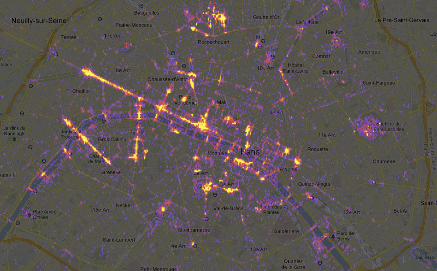 Prenons Paris par exemple, qui montre la cohérence du classement : grosse concentration de badauds à photos sur les Champs-Elysées, champs de Mars et centre de Paris. Le tout parsemé de quelques Tours Eiffel (selon le point de vue et l’inspiration du photographe) et autres célèbres monuments. Cool mais encore très touristique à la vue d’un Est parisien très en retrait, excepté le cimetierre du Père Lachaise… Pour la tombe de Jim Morrison ?