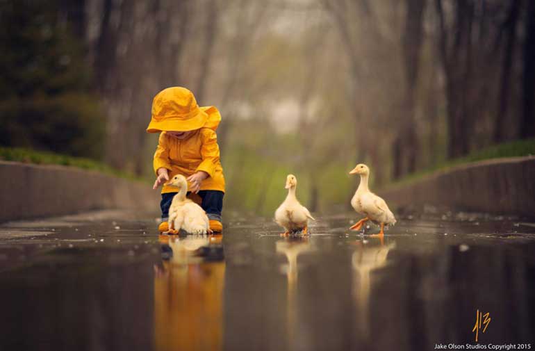 La seconde image représente un enfant jouant avec des canetons. Non seulement, il est facile de trouver l’original, mais cette série de photos est très connue. Il était donc impossible que cela n’éveille pas les soupçons.