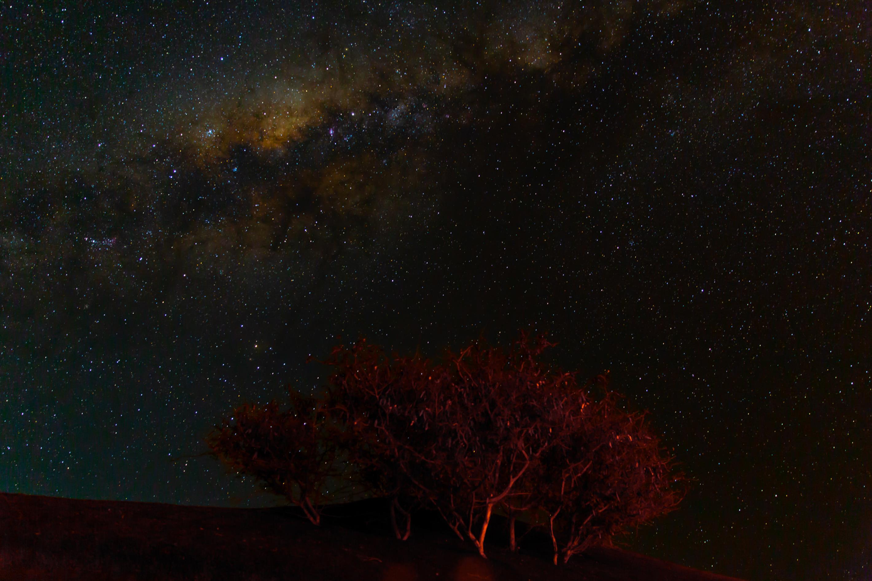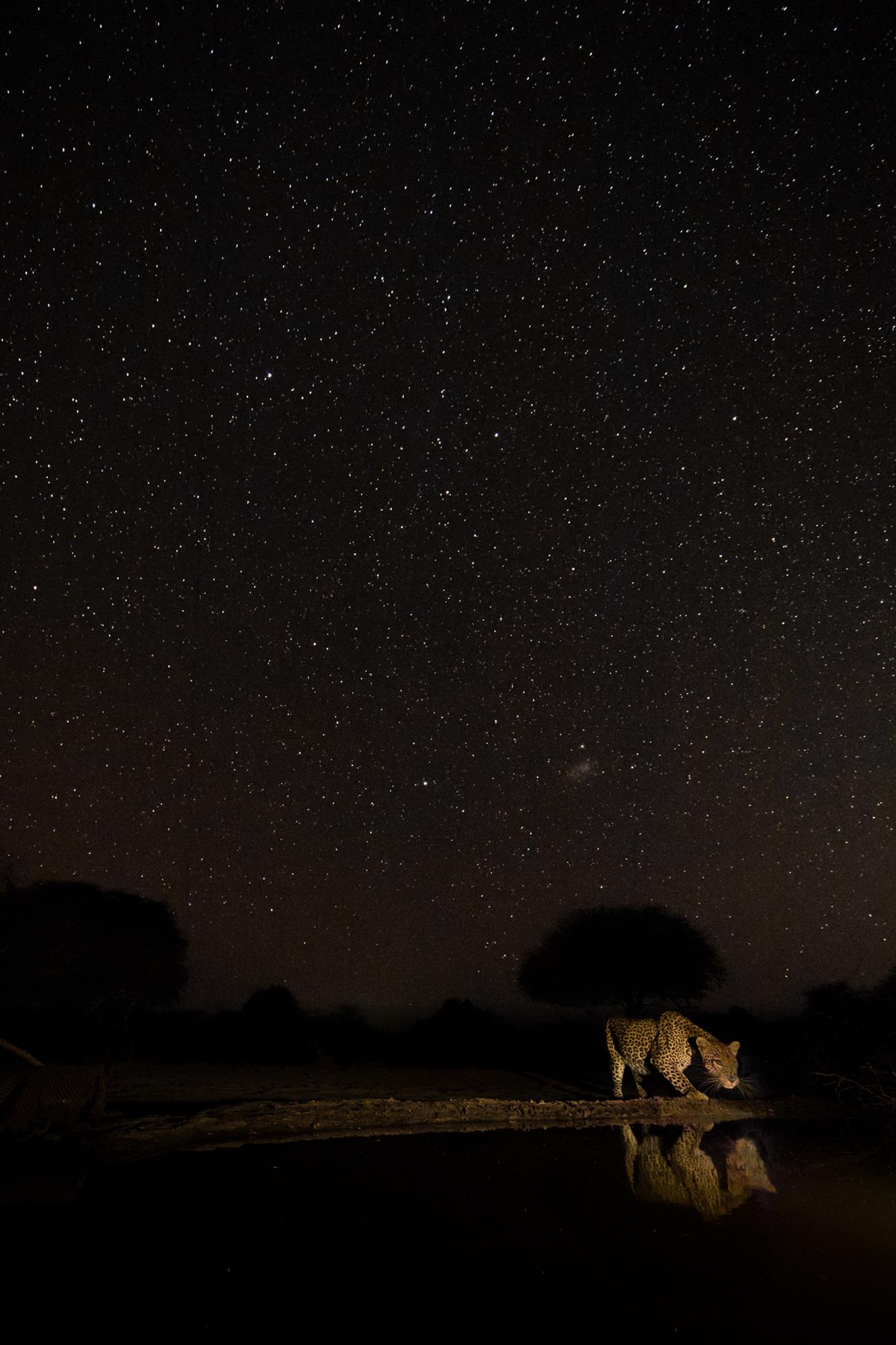 Le même principe a été appliqué pour les photographies nocturnes. La nuit, obtenir un éclairage optimal qui n’effraie pas les prédateurs sortis chasser fut encore plus compliqué. Il fallait que le flash soit aussi tenu que les rayons de la Lune. Ce procédé, respectueux des animaux, a permis d’obtenir des images parfaitement éclairées qui rendent également justice au merveilleux ciel étoilé.
