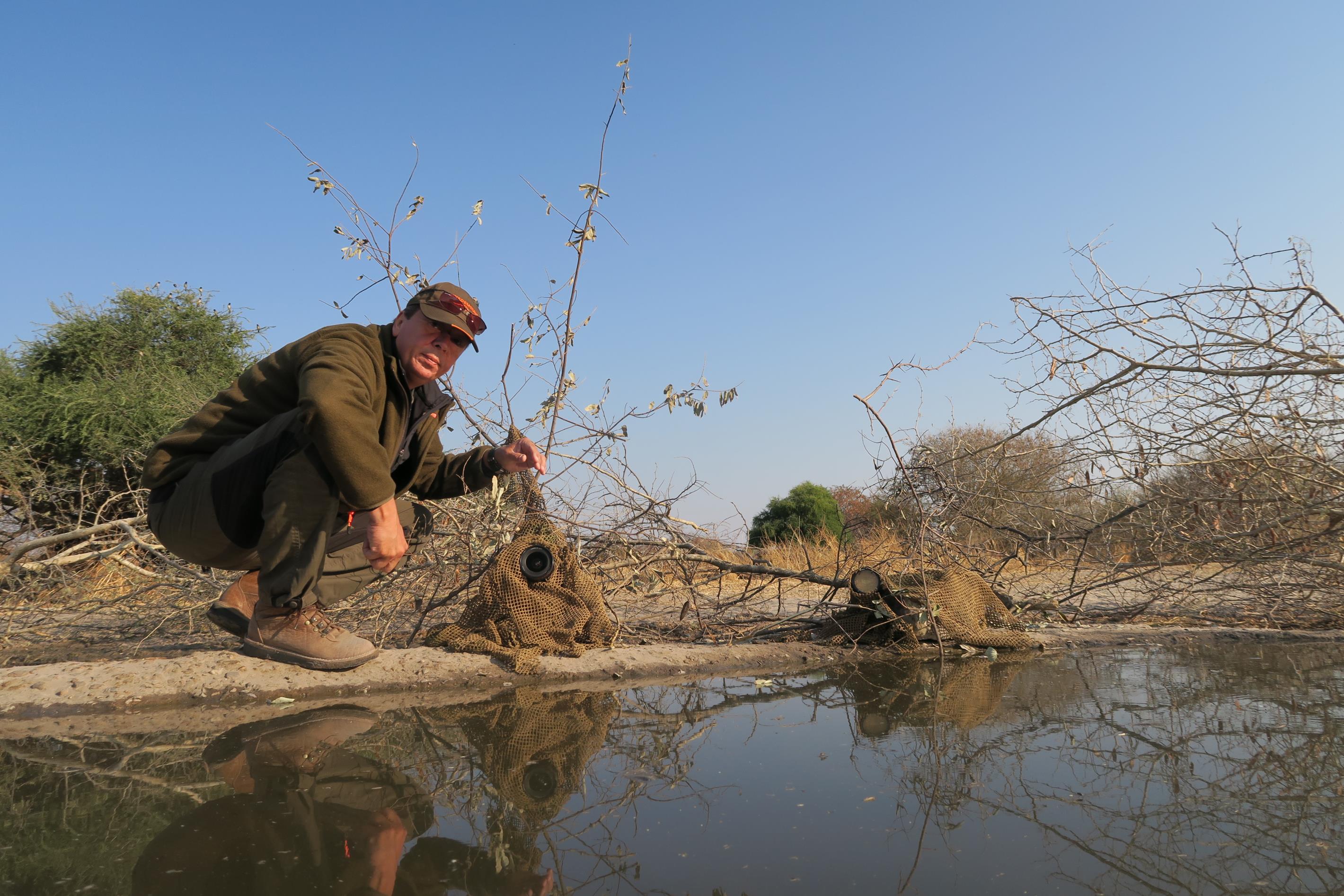 L’appareil a pu être maintenu en place grâce à un Joby GorillaPod 5K. Les deux ont attendu ainsi environ cinq heures par jour pour pouvoir immortaliser les herbivores venant se restaurer près de l’étang. Les animaux se sont ensuite habitués à la présence de l’appareil, le flash naturel du A1 ayant grandement aidé.