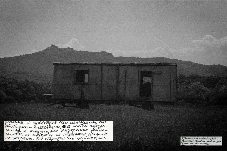 « Prises en 1983, mes photos noir et blanc d’Abkhazie contrastent fortement avec mon récent travail en couleur. Depuis la guerre de 1992-1993, la distance autrefois étroite entre ces lieux semblent maintenant insurmontable. Ces vieilles photos posent de poignantes questions sur les frontières, nos chers disparus, et les paysages qui n’existent plus. A travers ces juxtapositions, je cherche à renouer avec de merveilleux souvenirs et à reconnecter des êtres chers à leur lieu d’origine. »