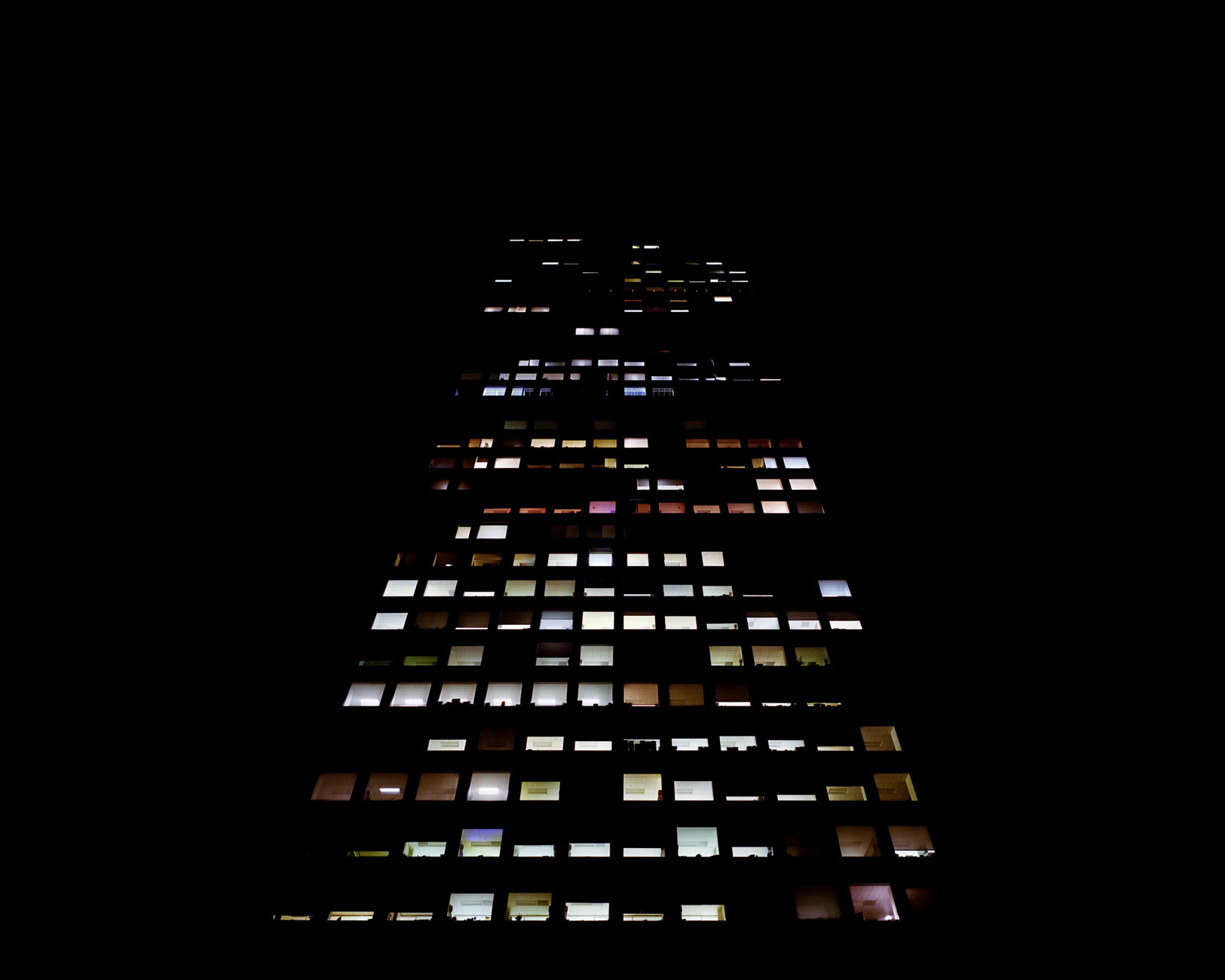 L’absence de décor rend l’omniprésence de ces fenêtres et autres points lumineux d’autant plus forte, s’en dégage une sensation fantomatique, presque angoissante. Les décors ne sont plus là, la vie elle-même disparait, mais notre imagination comble les vides et dessine naturellement les contours manquants.