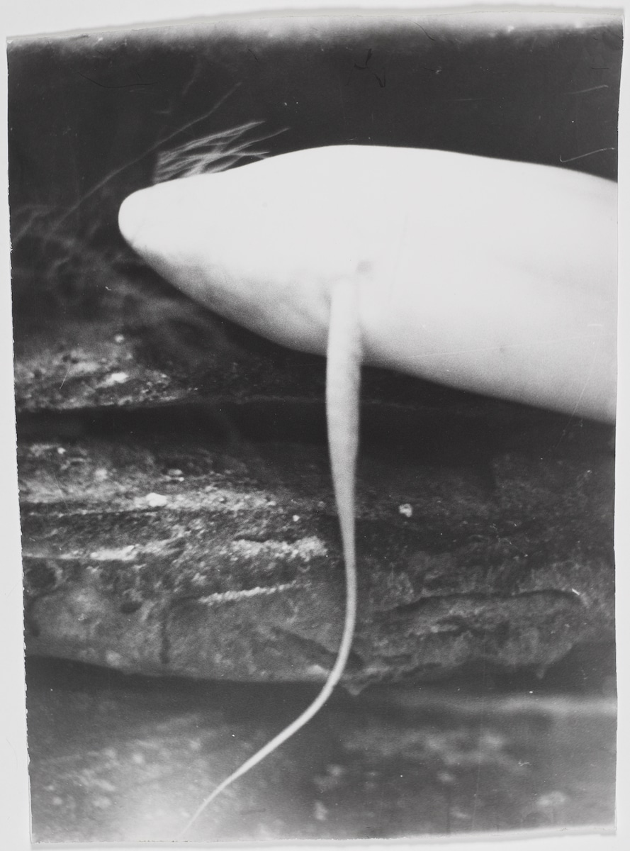 Avec une innocence et une curiosité retrouvées, on s’émerveille devant des tours d’éponges naturelles, la force herculéenne d’une fourmi, le tissage parfait d’une toile d’araignée, l’ombre d’un papillon sur l’asphalte, la trajectoire frénétique d’une mouche en plein vol ou encore la constellation de tâches de rousseur sur une épaule dénudée. En utilisant parfois le photogramme, le photographe bascule dans le surréalisme en se livrant à des visions fantasmagoriques. Grâce à cette matière photographique originale, permettant d’obtenir une image sans appareil, par simple contact avec la matière photosensible, l’artiste fixe les traces éphémères de quatre minuscules grenouilles sur le papier sensibilisé, devenues tâches abstraites en deux dimensions.