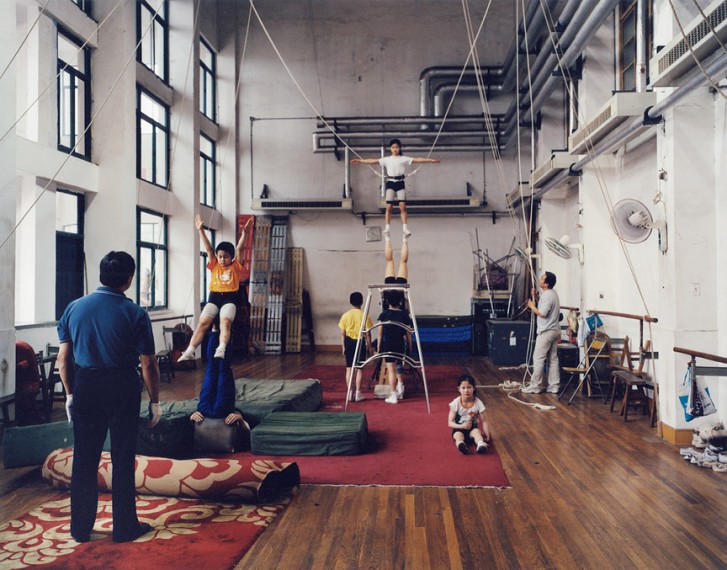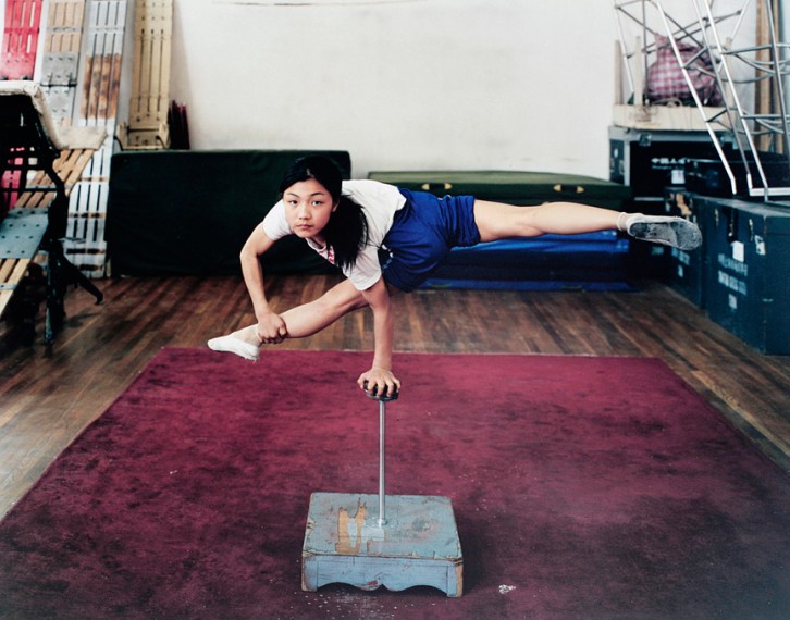 En quelques clichés – capturés pour le magazine anglais AnOther Magazine – toute une histoire se dévoile à travers le portrait de ces jeunes acrobates de Shangaï, du temps passé à l’entraînement à la vie passée sur les routes pour le Shangaï Circus World, dès leur plus jeune âge. Des cordes aux barres parallèles en passant par les rubans, une étonnante souplesse se dégage de cette série Shangai Acrobatics, aussi bien dans les chorégraphies que dans ces portraits d’enfants surentraînés, à la fois dure et sensible.