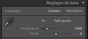 Au niveau de la Balance des Blancs, nous sommes à 3400K, une température un peu trop chaude à mon goût. Et puis çà se voit un peu sur la photo.