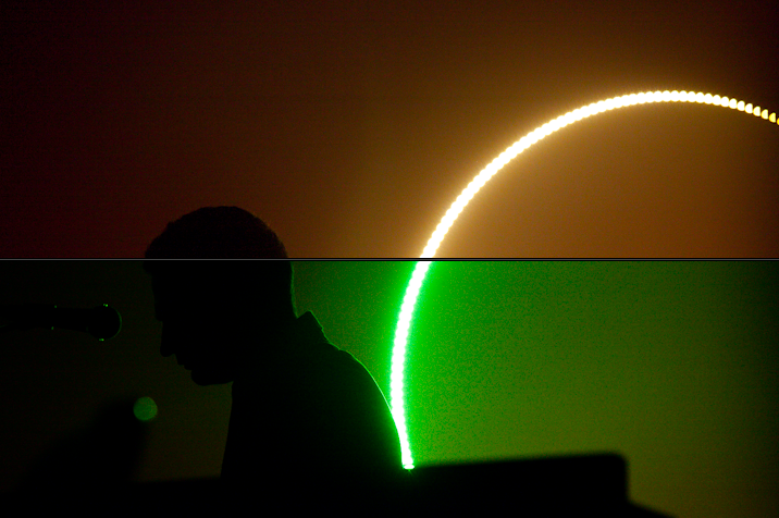Prenons un cas concret : voici une photo d’un artiste prise récemment. Ici : la lumière est changeante et varie entre le rouge, et l’orangé : un mélange parfait pour que votre capteur soit complétement perdu au niveau de la balance des blancs, notamment si on l’a mise en automatique comme je le fais. Ici le capteur sature au niveau des rouges et la photo semble ratée. Pas vraiment.