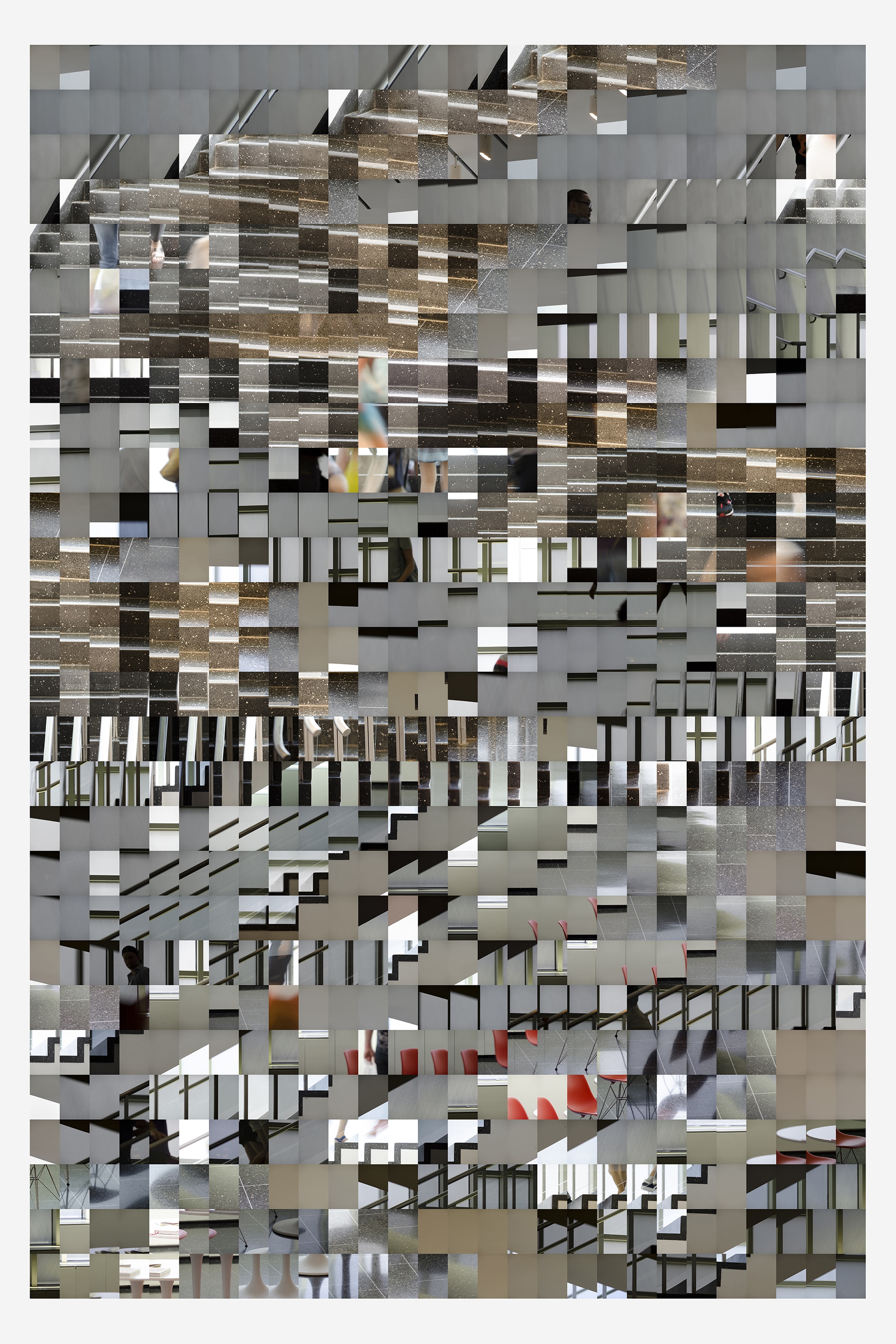 Après sa formation d’orfèvre, Katharina Gaenssler travaille depuis vingt ans dans le domaine de la photographie. Dans le cadre de son travail artistique, elle a principalement créé des installations murales et des livres-objets. L’essentiel de ses travaux est axé sur les lieux de production et de présentation de l’art, sur l’éphémère et le caché. Dans les années 2003 à 2015, elle crée un grand nombre d’installations photographiques : des images murales, parfois composées de milliers d’impressions au laser, collées sur les murs d’une salle d’exposition. Toutefois, ces dernières années, le matériel photographique a également été utilisé comme papier peint, tapis (picturaux) ou dans l’impression textile, par exemple en tant que revêtement mural. L’œuvre relie toujours l’image à l’espace dans laquelle elle est exposée. De cette façon, l’installation connecte l’architecture du lieu à un contenu imagé spécifique.