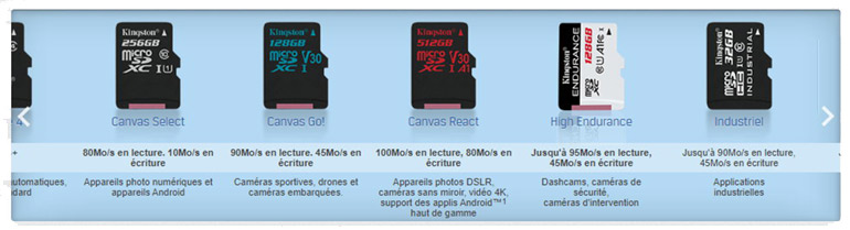 Alors que les nomenclatures des cartes sont souvent incompréhensibles pour les utilisateurs, Kingston a le mérite de proposer des gammes simplifiées, par usage, pour une plus grande clarté.