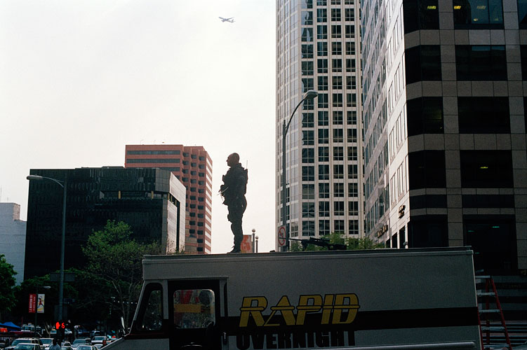 En fait, ce sont des montages, ou plutôt de collages, entre des photos prises dans la rue et des images de films. La frontière entre photo-reportage et photo de studio se trouve ici brouillée. En réorganisant les personnages et décors, Martin (ré)invente une réalité… terriblement réaliste.