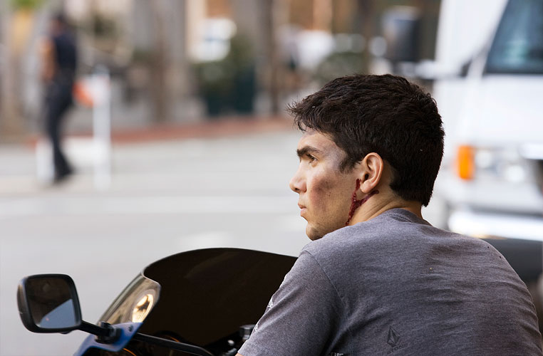 Accidents, blessés, fumée, arrestations violentes, corps écroulés sur la chaussée, sans-abris errant au milieu des voitures… Les images sont crues, décalées… peut-être pas peu accessibles au premier abord… (?)