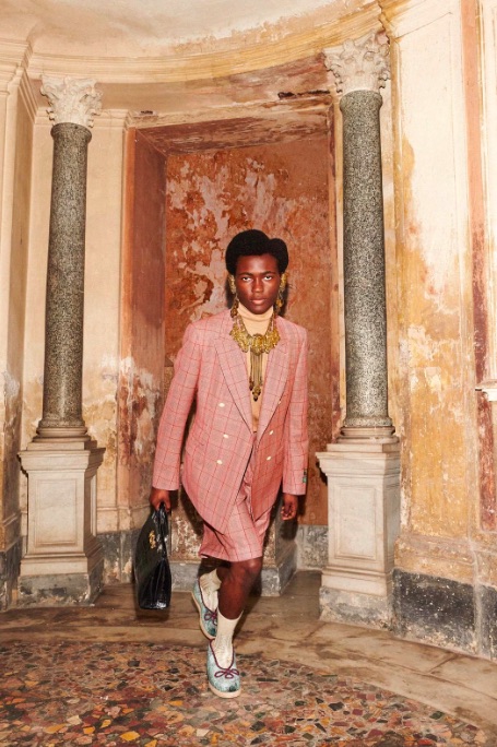 Cette fois-ci, le shooting s’est déroulé dans la Villa Albani Torlonia, plus précisément dans la galerie archéologique Della Leda. Les mannequins se fondent dans ce décor classiciste en déambulant entre statues, sphynx, fresques, colonnes…une réinterprétation du passé émerge de ce travail qui ancre la marque historique au coeur de la modernité, en faisant rencontrer la culture de la fête et le mouvement new age avec les racines romaines de l’Italie. Pour mettre en scène ce « rêve de classicisme », Gucci a collaboré avec le réalisateur grec réputé pour son goût des corps désarticulés et de l’étrangeté. Dans le passé, la maison avait fait appel au réalisateur Harmony Korine (Kids, Spring Breakers) pour une séance photo au milieu des ruines de Pompei.
