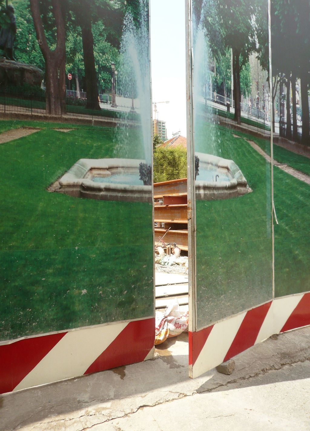 Des sacs en plastique, des cartons, de la poussière, des éléments urbains, des emballages ou encore des affiches, tout est prétexte à créer des sculptures 2.0. Espaces insolites et moments poétiques, ses photographies mettent en places des sensations nouvelles et nous font ré-apprécier la ville. Là où le quotidien paraît morne, il devient extraordinaire voire drôle et absurde à travers l’objectif sensible du photographe. Les gestes architectural, sculptural, performatif, graphique et photographique, pourrait être lue comme burlesque – ce registre qui utilise la catastrophe, le détournement et le brouillage de la hiérarchie des valeurs comme perturbateur d’un ordre établi. C’est donc à travers ces joyeux chaos visuels que Pouvreau crée des moments photographiques métaphoriques, résolument contemporains.