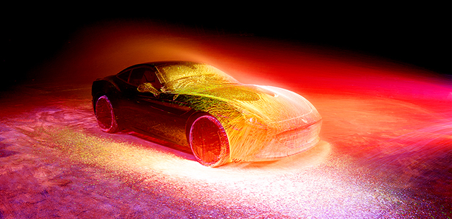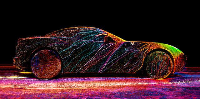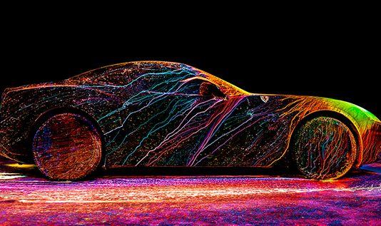 Comment rendre hommage à un bolide, à son caractère et à ses lignes ? Réponse avec de la peinture UV projetée à 240 km/h …