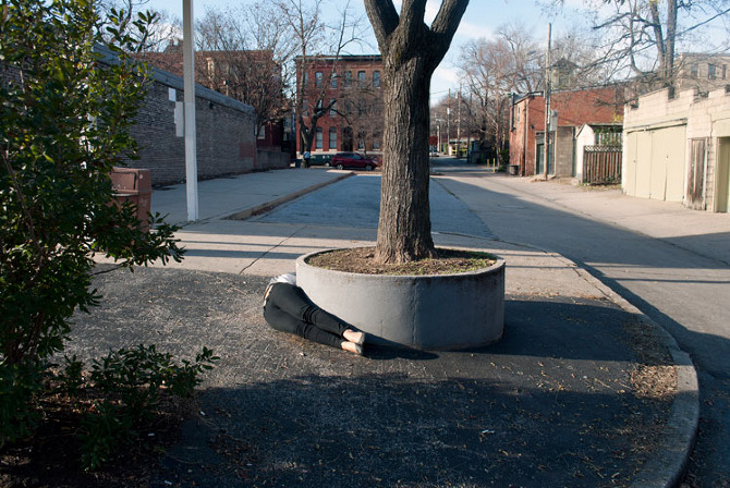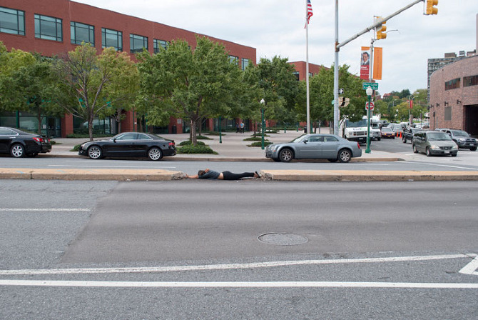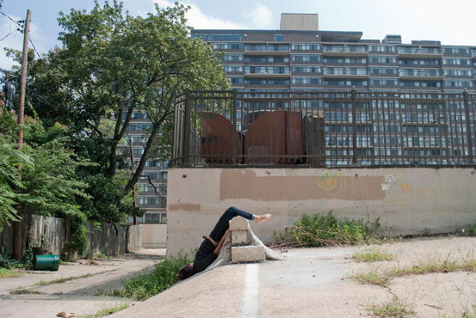 Ayant grandi au milieu des forêts du nord de l’état de New York, elle se retrouve étrangère à Baltimore mais avec un sens de l’observation aiguë, un regard pointu sur les changements de l’environnement. Les paysages de la ville se façonnent et se modifient sans cesse. Comment s’approprier l’espace qui nous entoure? Comment « faire corps » avec l’extérieur?