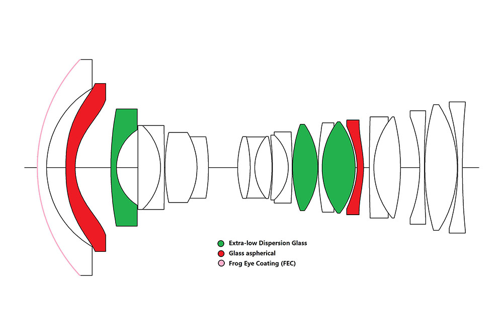 Le Laowa 17 mm f/4 GFX Zero-D dispose d’une longueur de 124,5 mm, d’un diamètre de 88 mm, d’un poids de 829 g et d’une distance focale fixe de 17 mm qui lui octroie un angle de champ de 113° (équivalent à celui d’un objectif 13 mm en 24×36). Son diaphragme à 5 lamelles autorise une ouverture maximale de f/4, et sa conception optique rassemble la bagatelle de 21 lentilles réparties en 14 groupes. Selon Venus Optics, la présence de 2 lentilles asphériques et de 3 éléments à faible dispersion aiderait grandement à limiter les déformations et les aberrations chromatiques. La mention « Zero-D » (pour Zero Distortion) atteste d’ailleurs de la volonté de la marque d’adresser ce nouvel objectifs aux photographes d’architecture qui souhaitent éviter les déformations dues à l’usage d’un ultra grand-angle.