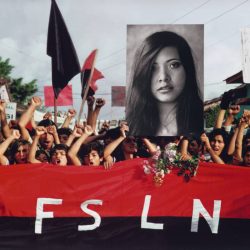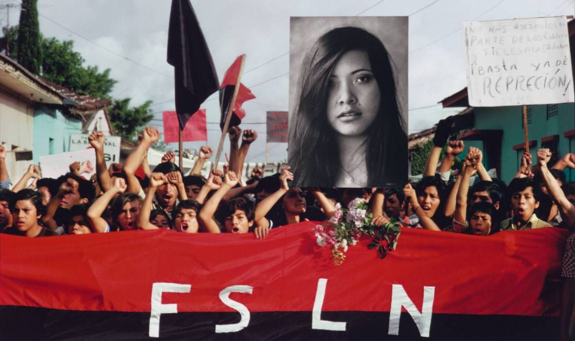Susan Meiselas, “A Funeral Procession in Jinotepe for Assassinated Student Leaders. Demonstrators Carry a Photograph of Arlen Siu, an FSLN Guerilla Fighter Killed in the Mountains Three Years Earlier” (1978) © 2021 Susan Meiselas