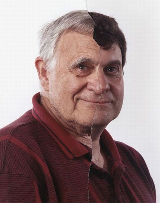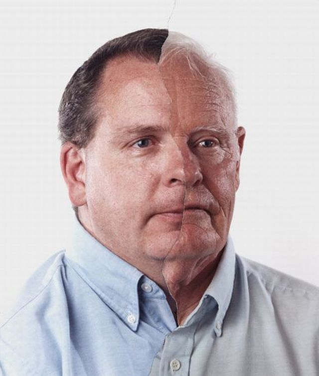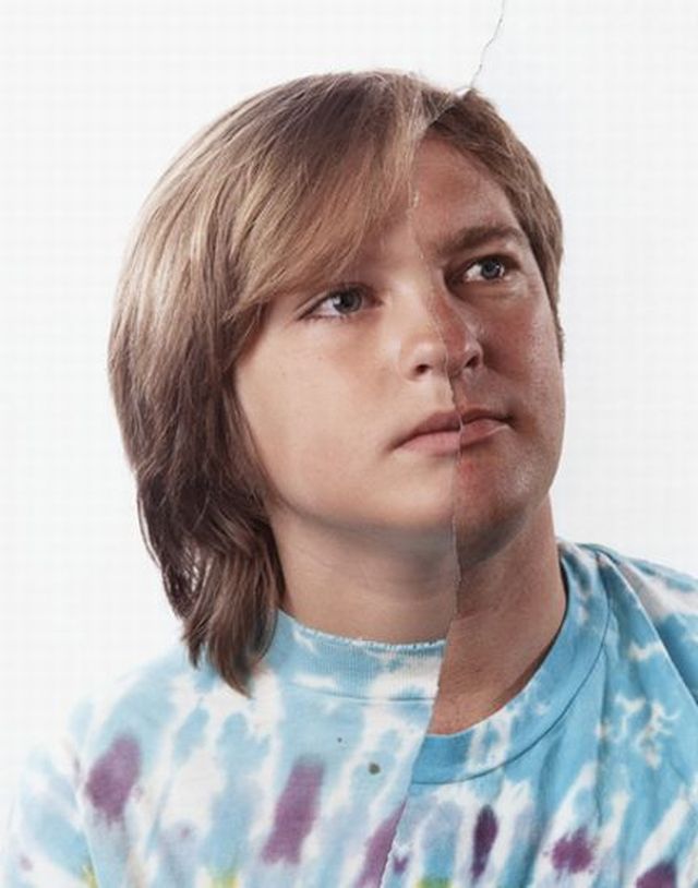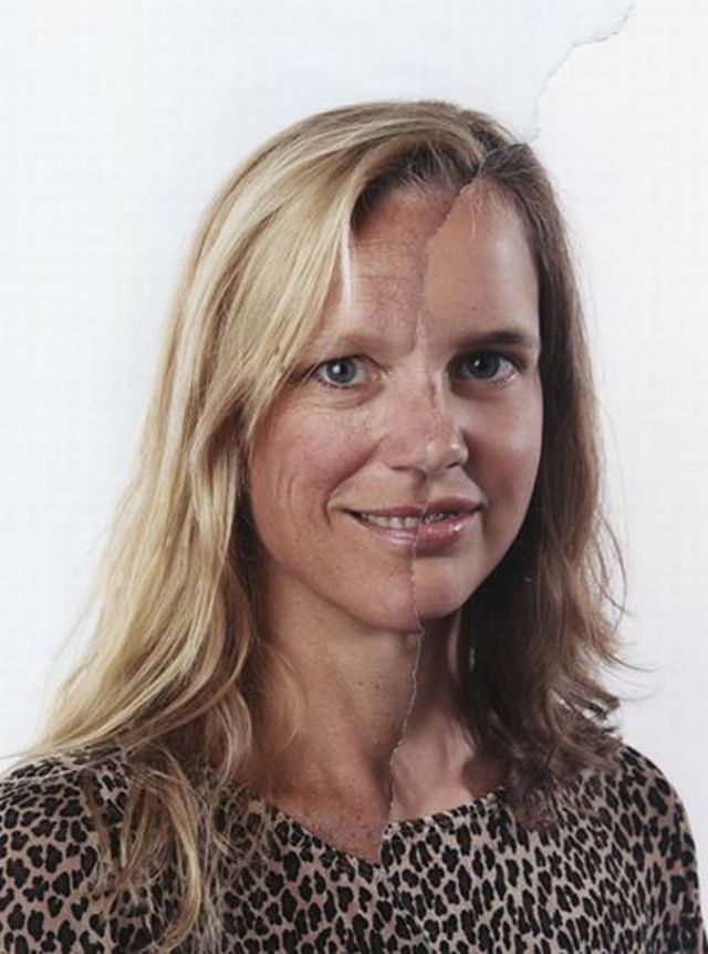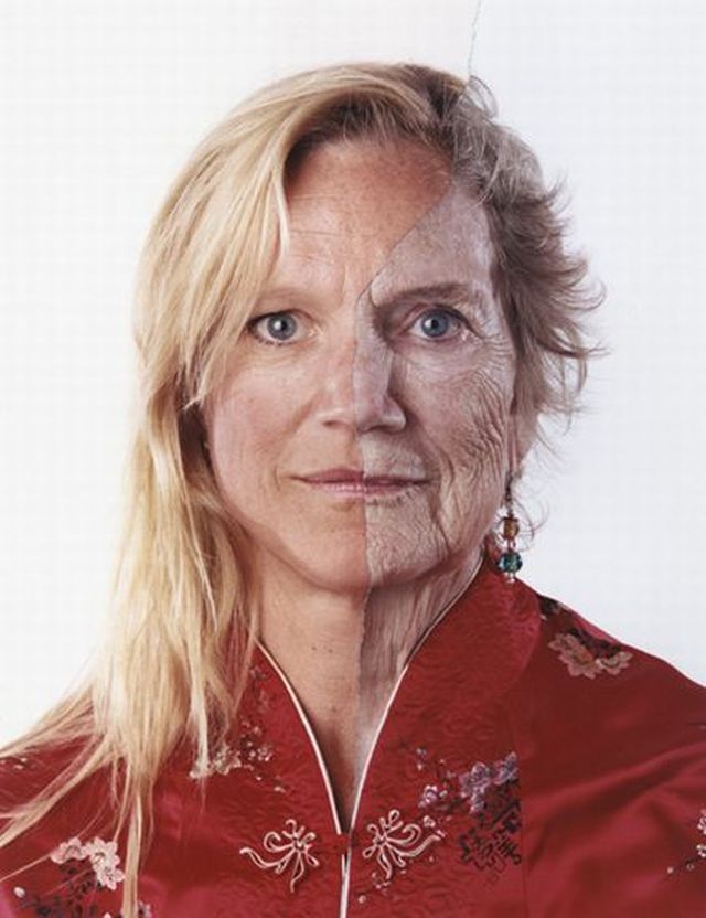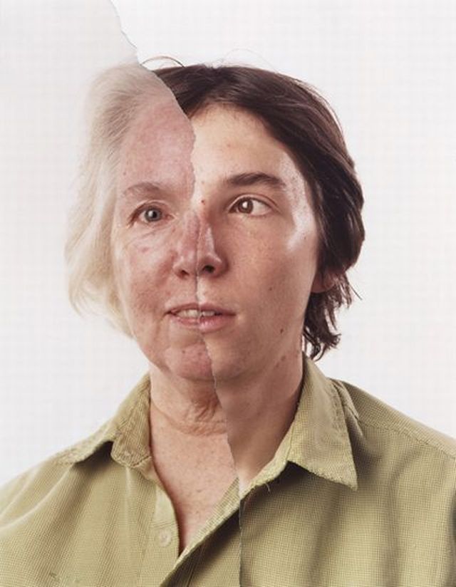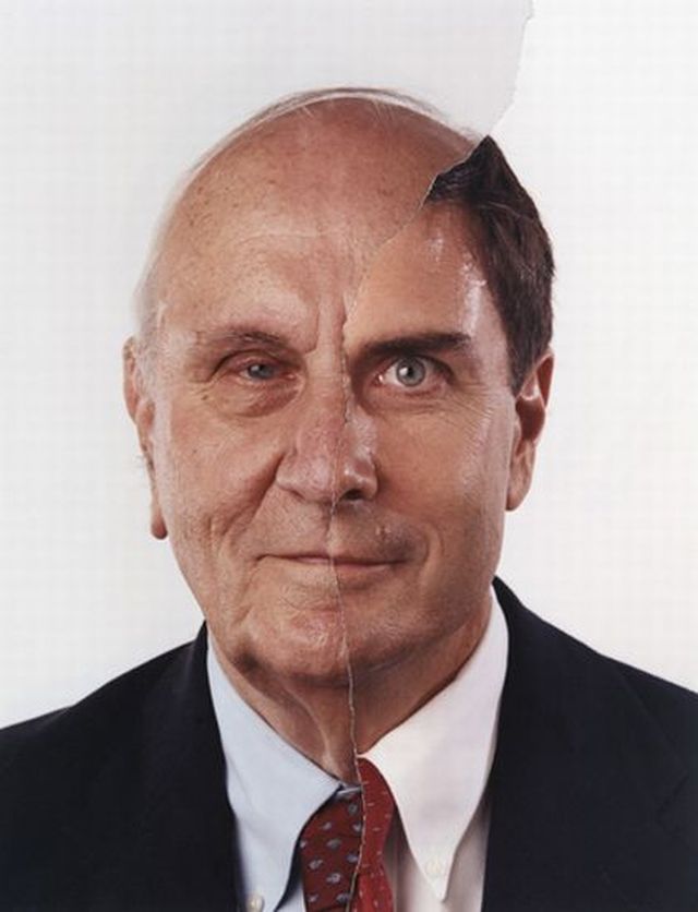 Dans Family Tree, le photographe ne cherche cependant pas à masquer ou à uniformiser absolument des visages différents, il met juste en parallèle deux personnes partageant un lien filial. Pour AgeMaps, le thème est le temps qui passe, un amusant mash up avant/après, là aussi complètement naturel.
