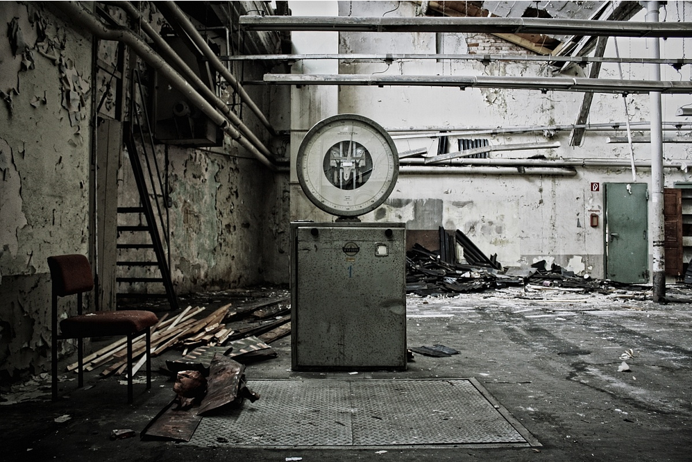 Des machines abandonnées, des escaliers qui s’effondrent, des notices explicatives qu’on ne lit plus et des panneaux électriques sans électricité…