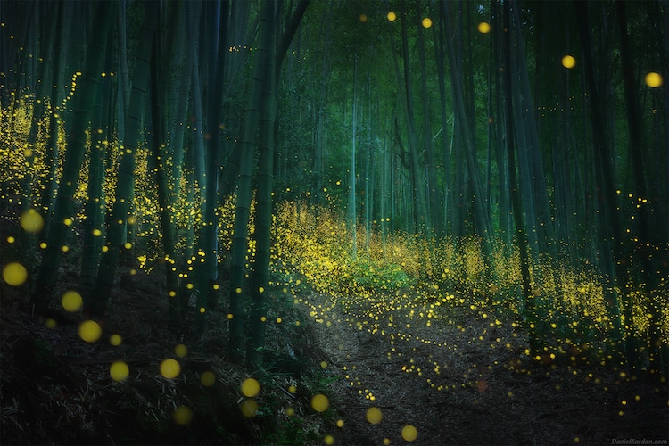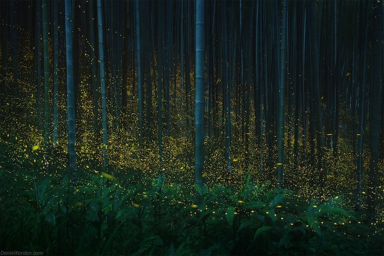 Daniel Kordan immortalise des milliers de lucioles flottant dans une forêt japonaise pendant la nuit. Un rare exploit digne des photographes de nature les plus patients ! (Photo d’ouverture : © Daniel Kordan)