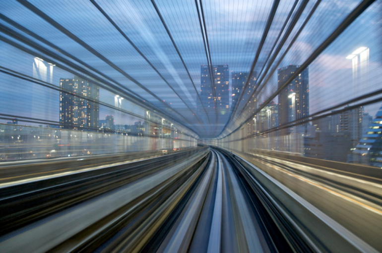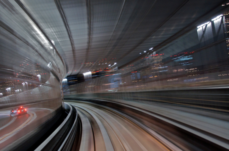 Et en a profité pour prendre des poses longues, mais pas trop : la vitesse du train rend flou les parois extérieures de la ligne, quand les éléments du fond restent assez nets. La sensation de vitesse et de fluidité qui s’en dégage est superbe, presque hypnotique. Bon voyage.
