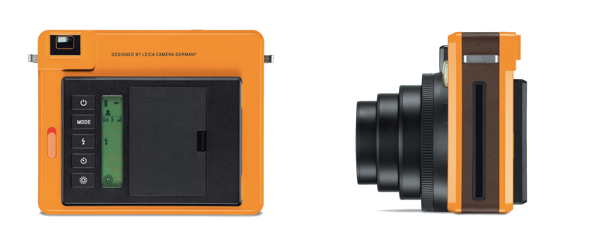 L’appareil photo instantané de Leica embarque un flash que le photographe pourra contrôler ou laisser en mode auto. Comme certains Instax mini de Fujifilm (mini 70, mini 25), le Leica Sofort héberge un petit miroir en façade pour aider au cadrage d’autoportrait. La sortie du cliché se fait du côté gauche. Un petit écran LCD monochrome donne les principales informations.
