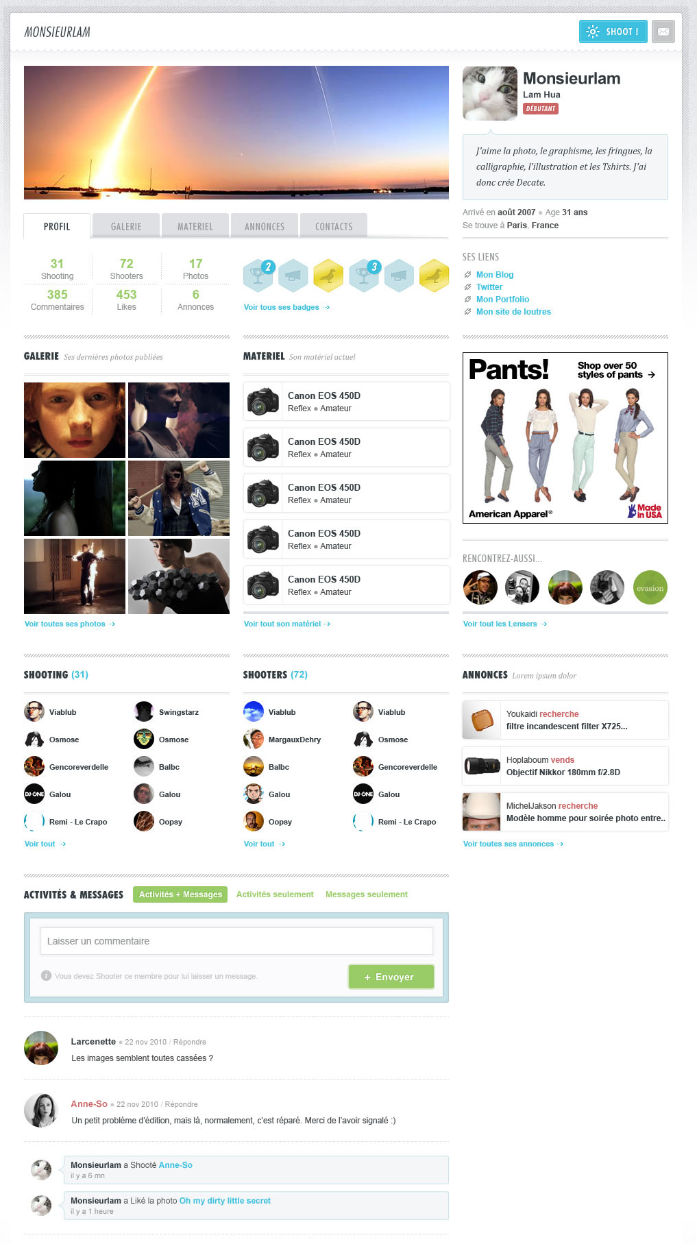 Du coup, nous avons mis les mains dans le cambouis pour que la partie sociale de Lense le site soit à la hauteur. Résultat ? Tous les outils modernes pour découvrir d’autres Lensers et promouvoir son travail :