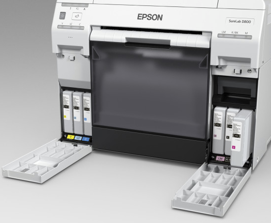 L’Epson SL-D800 s’architecture autour de six cartouches d’encre de 200 ml (Cyan, Magenta, Jaune, Noir + Magenta clair et Cyan clair ), ainsi que de la technologie à taille de point variable qui délivre des gouttelettes d’encre de tailles différentes (taille minimale de goutte de 2,5 picolitres). Ces dernières permettent d’obtenir des impressions aux couleurs éclatantes, avec un niveau de brillance uniforme, ainsi qu’un gamut particulièrement important grâce aux deux couleurs intermédiaires.