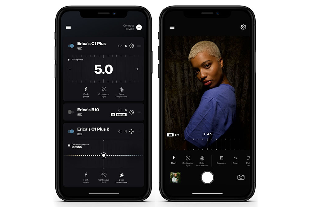 Si les deux nouveaux produits Profoto diffèrent quelque peu l’un de l’autre par leurs fonctionnalités et leur prix, ils ont tous deux pour but de contourner les limitations – en termes de puissance et d’orientation – des flashs intégrés aux smartphones. Une fois connectés à un tel terminal en Bluetooth, ils fonctionnent à l’aide de l’application Profoto Camera. Celle-ci permet notamment le réglage de leur puissance et de leur température de couleur, ainsi que leur synchronisation avec le déclenchement de l’appareil photo du smartphone. En plus de conférer un apport de lumière dans les situations les plus sombres, les C1 et C1 Plus octroient donc des possibilités créatives non négligeables – notamment parce qu’ils peuvent être utilisés de manière déportée.