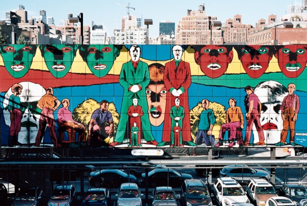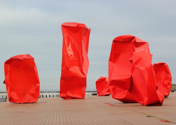La silhouette d’une femme et toutes les couleurs s’animent. On retient le rouge : celui d’un mur, d’un siège, au dessus d’un parking ou utilisé par un artiste.