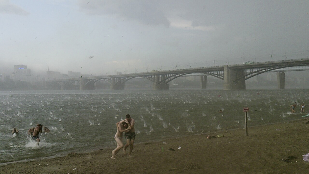 Des baigneurs supris lors d’une tempête de grêle durant le mois de juillet en Russie. ©Nikita Dudnik, 12 juillet 2014.