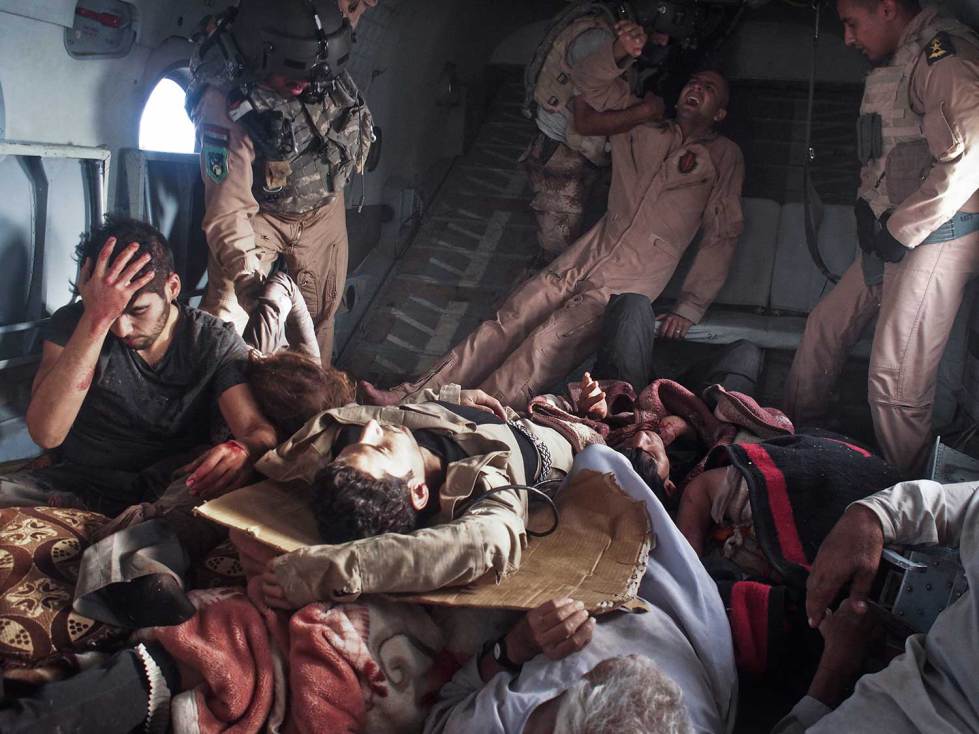 L’après crash d’un hélicoptère en Irak, durant l’exode des Yézidis. ©Moises Saman, monts du Sinjar, 12 aout 2014.