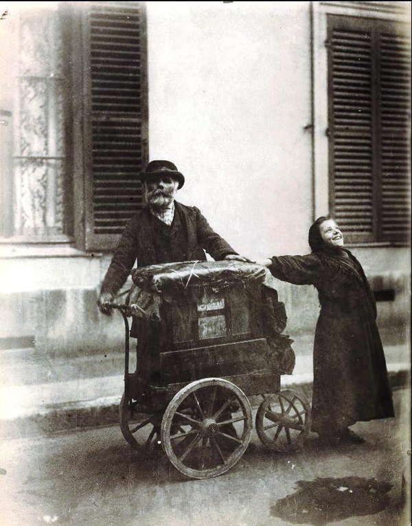 A la fin des années 1890, Eugène Atget réalise une série de photos, « Paris Pittoresque » dont celle-ci est la plus connue : le joueur d’orgue est alors un métier en voie de disparition… Elle distille, déjà à l’époque, une aura de nostalgie.