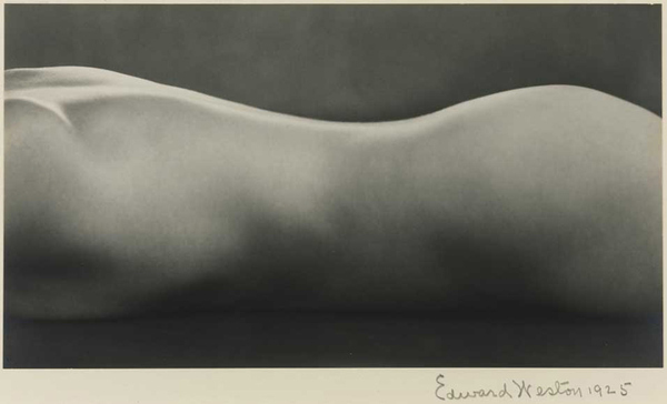 On retrouve Edward Weston et sa volonté de montrer les « choses en soi ». Son sens des textures, de la surface, se révèle pleinement dans son traitement du nu…