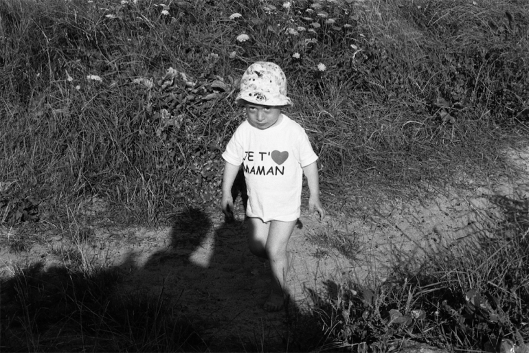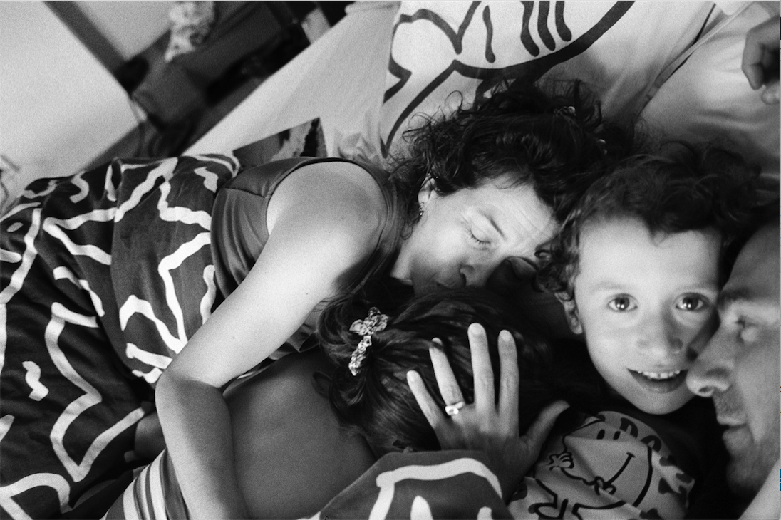 Rien de tout cela transparait dans les photographies de Geneste, ces noirs et blancs spontanés fuyant toute métaphore ou esthétisme. « À bout de bras » n’est autre qu’une série de clichés qui montrent presque hasardeusement l’incandescence du bonheur en famille, la pureté des relations parentales, l’importance de ces affectes, que le photographe comme l’artiste ne représentent que très peu de peur que ce sujet les désarme de tout savoir esthétique et technique.