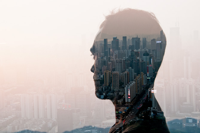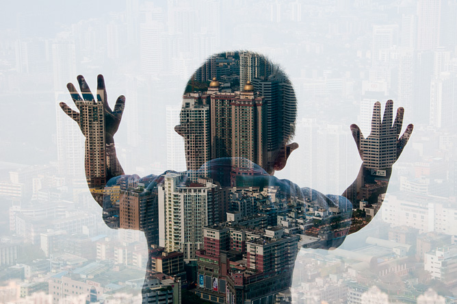 Avec ses photos qui utilisent la double exposition tout en douceur et en précision, Japser James met l’humain au cœur de paysages urbains.