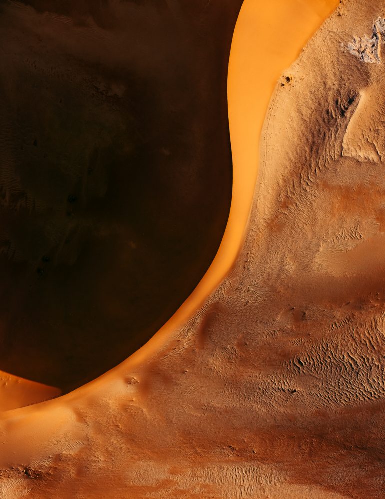 Tom Hegen est une référence en matière de photographie aérienne. Ses paysages sauvages capturés depuis un hélicoptère ont fait le tour des internets et lui ont valu une renommée internationale. A travers son regard, il nous fait découvrir les endroits les plus époustouflants de la planète, des éco-systèmes fragiles et pourtant sublimes, remplis d’un sens de grandeur. Son travail s’est souvent tourné vers la thématique de l’impact humain sur l’environnement, comme dans ses séries sur les glaciers ou sur l’extraction du sel dans les marais salants à travers le monde. Avec sa série sur les dunes de Namibie il nous plonge au coeur de l’un des territoires les plus fascinants du continent africain.