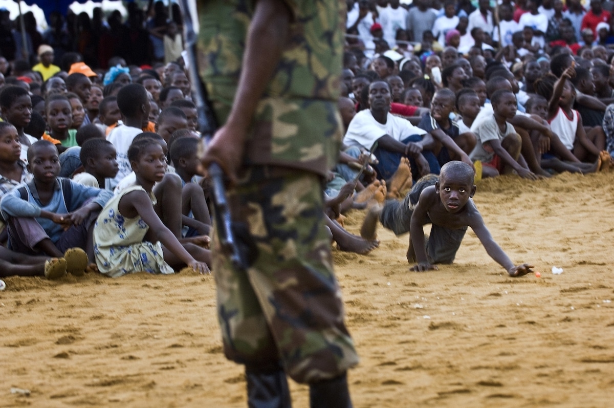 Cette année, le gagnant est Jonathan Banks qui a pris cette image puissante d’un jeune garçon au Libéria, récupérant sa balle tombée au sol près des militaires qui surveillent la foule assise. L’image a été capturée lors d’une parade, pendant laquelle le photographe aurait dû dans un premier temps immortaliser les soldats. C’est après avoir tourné son objectif vers les gens assis qu’il s’est aperçu que la scène était effectivement beaucoup plus intéressante vue depuis cette perspective. Cette tension est parfaitement rendue dans le cliché, qui porte le titre A Boy in the Crowd.